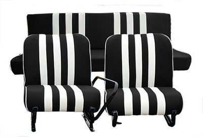 Set van 2 complete voorstoelen + achterbank Skai ZWART gestreept WIT Mehari
