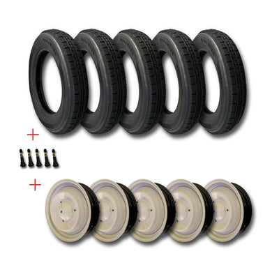 Set van 5 125/15 2CVP RACING banden + 5 velgventielen + 5 standaard roze-grijze velgen + GRATIS MONTAGE