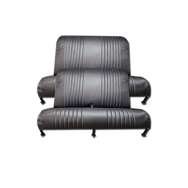 2CV BEKLEDINGSKIT VOORSTOEL + ACHTERSTOEL. GEPERFOREERDE ZWARTE SKAI